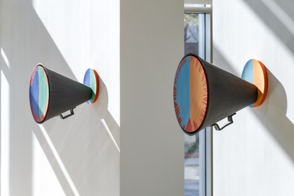 For BIG MOUTH Emma Hart uses her ceramic sculptures to perform, play out and question the power dynamics that structure a class-based society. Hart probes how our social background is transmitted through verbal signals and physical gestures, especially speech. Going beyond making vessels or pots, Hart’s risky approach to working with ceramics pushes the technical limits of clay, setting it to make ‘situations’ in which the viewer finds themselves centre stage. Starting with the idea of manipulating ‘signs’ such as pointing fingers, speech bubbles and targets, Hart produces imposing sculptures that tell you where to look, where to go and forcibly put words into your mouth that may not form part of your own vocabulary. Rather than generate meaning, Hart’s work generates experience, and suggests that maybe Hart’s feelings, doubts, and anxieties aren’t that far away from your own.